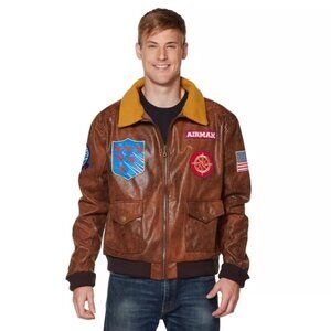 SPIRIT Aviator Bomber Faux Leather Jacket Costume Sherpa Collar Men's M