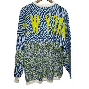 SPIRIT JERSEY | NWT Crew Neck Neon Leopard Print New York Sweater | Size XS & S