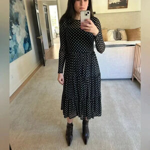 SPIRIT OF GRACE mesh polka dot tiered midi long sleeve dress S Ivy city co