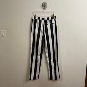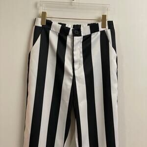 Details: Beetlejuice the movie Halloween Costume pants spooky stripes zipper and button closure good quality high rise straight leg
