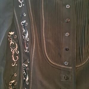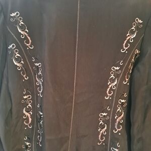 SPIRIT by Cold Water Creed Embroidered Yoke Black Silk Button Down Jacket Size 14