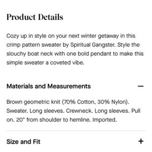 SPIRITUAL GANGSTER CRIMP YARN GEMMA SWEATER SIZE MEDIUM