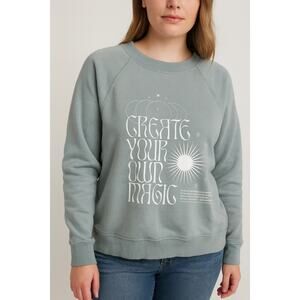 Bring good vibes wherever you go in this cozy, sky-blue Spiritual Gangster sweatshirt featuring a positive affirmation and celestial design. The uplifting “Create Your Own Magic” print with sunburst and moon phase graphics. Perfectly soft with a broken-in feel, this classic crewneck sweatshirt is made from 100% cotton and fits true to size.