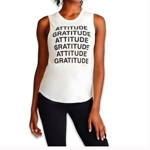 Radiate good vibes in this Spiritual Gangster “Gratitude” muscle tank — the perfect blend of comfort and positivity. In soft ivory with the words “Attitude Gratitude” repeated across the front, this tank inspires mindfulness while keeping your look effortlessly cool. Lightweight and easy to pair with leggings or denim. New with tags and ready to wear.