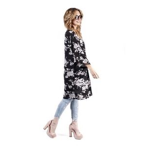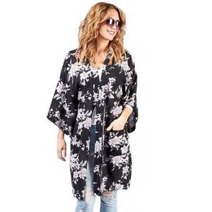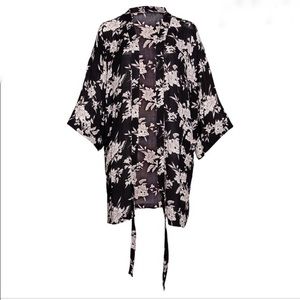 Spiritual Gangster black floral kimono. Soft rayon material. Detachable belt. Bell sleeves. Can be worn open or tied for different looks. Wear to the beach or a night out. Cute on trend boho top perfect for many occasions. In excellent condition. No flaws. One Size.