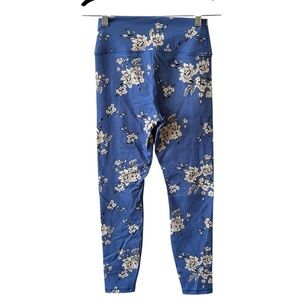 Blue allover floral print, womens size Medium, hi-waisted, pull on, 23” inseam ankle length.
