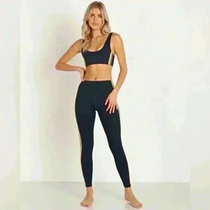 Spiritual Gangster perfect high waisted legging features contrast side stripes, a flattering double layer waistband and medium support. Ankle length.