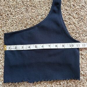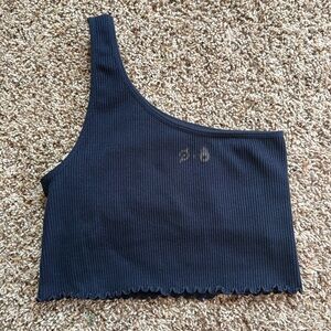 Navy blue. Asymmetrical one sleeve ribbed cropped tank top