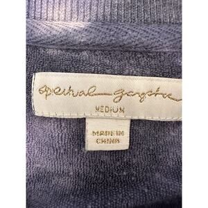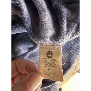 SPIRITUAL GANGSTER x PELOTON Tie Dye Blue White Crewneck Sweatshirt in Medium is a stylish and comfortable activewear piece for women. Featuring a pullover style with a crew neckline, this sweatshirt is perfect for casual outings or working out. The tie-dye design adds a fun and vibrant touch to the blue and white color scheme, making it a versatile addition to any wardrobe. Made in collaboration between two popular brands, this sweatshirt is sure to be a trendy and high-quality choice for the modern woman.