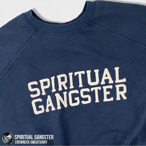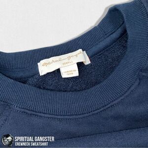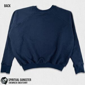 SPIRITUAL GANGSTER WOMEN’S COTTON VARSITY CREWNECK SWEATSHIRT VINTAGE NAVY BLUE