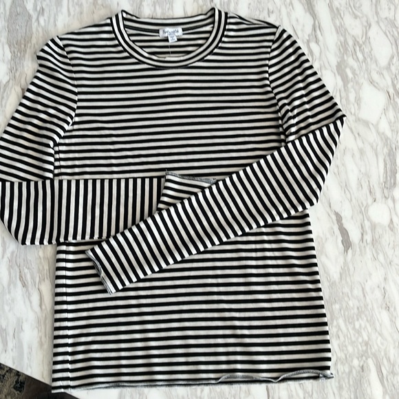 Beautiful Splendid stretch slim fitting top in cream and black stripes with pretty stitching along all the trim. Brand new, size Medium.