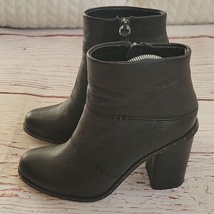 SPLENDID Black Leather Heeled Ankle Boots with Silver Studs Size 7