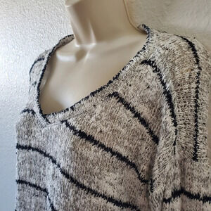 SPLENDID Broome Stripe Loose Knit V Neck Top Gray Size S