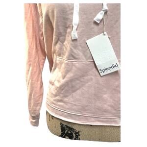 SPLENDID COLLECTION light pink speckled hoodie with frayed hem NWT M