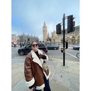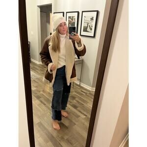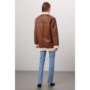 SPLENDID Earhart Brown Faux Leather Aviator Collar Jacket Size Extra Small