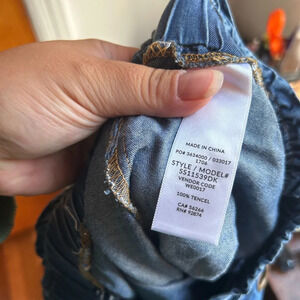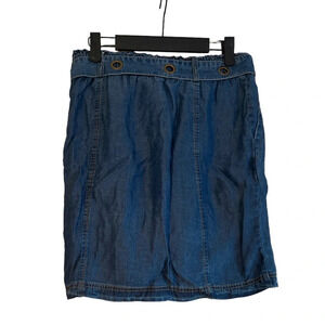 Pre owned excellent condition. Worn once or twice. Super cute lightweight denim skirt with elastic waist and waist tie. Has super cute detailing on front of skirt. WOMENS size small.