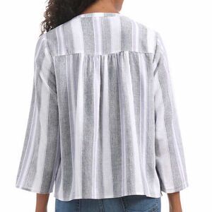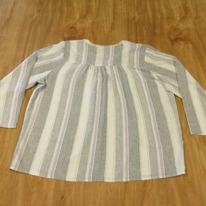 SPLENDID Ladies Linen Blend Blouse Size M Grey Purple White Strip Top Shirt NWT