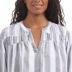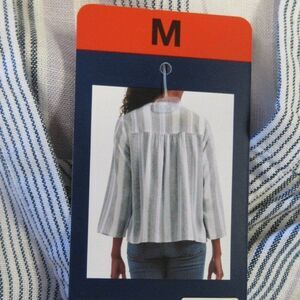 SPLENDID Linen Blend V-Neck Blouse Size M Grey Purple White Strip Top Shirt NWT
