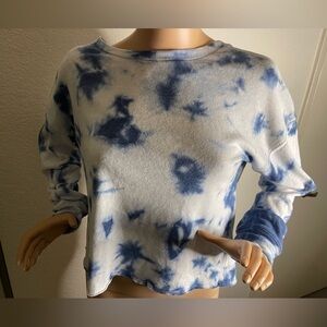Splendid | NWT Blue Tie Dye Round Neck Long Sleeve Cropped Sweatshirt Size S