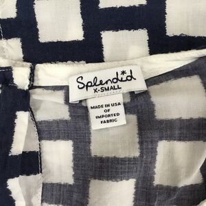 SPLENDID - Navy Blue & White Window Pane Cap Sleeve Buttoned Back Top - Size XS