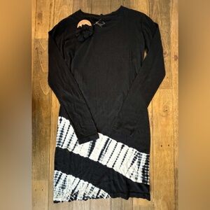 SPLENDID Shibori Black and white Long Sleeve Tie Dye Print Mini Jersey Dress
