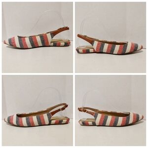 SPLENDID Slingback Shoes Saryn Pointy Toe Striped Canvas Flats Vegan Women 7.5 M