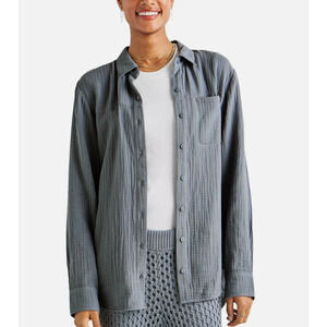 SPLENDID TOP WOMENS SIZE MEDIUM KIT COTTON GAUZE BUTTON-UP SHIRT BLUE NEW