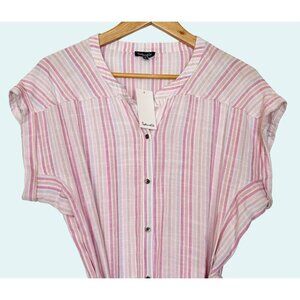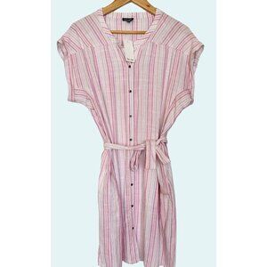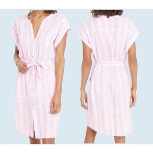 SPLENDID Wailea Hibiscus Pastel Stripe Linen Blend Full Button Dress Sz M NEW NW
