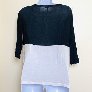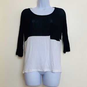 SPLENDID Womens Color Block Shirt Black and White Size Small 3/4 Sleeve Front Pocket Very Good Used Condition