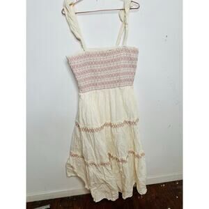 SPLENDID Women's White Pink Cotton Colorful Trim Riviera Maxi Dress Size XL
