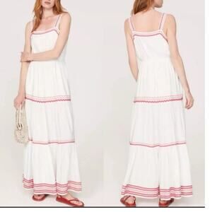 SPLENDID Women's White Pink Cotton Colorful Trim Riviera Maxi Dress Size XS