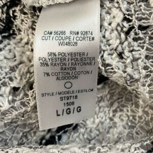 Like new Splendid black and white open loose knit Broome Stripe V Neck Sweater Distressed. EUC, great shape, size large, polyester cotton blend, high low, see pictures for details.