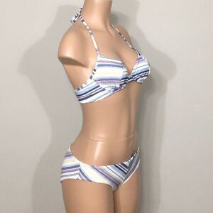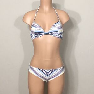 Colorful chevron stripes add detail and edginess to this classic bikini.