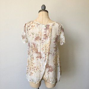 SPLIT BACK FLORAL CHIFFON SHEER BLOUSE