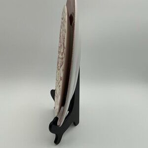 Add a touch of charm to your living space with this handmade Spode Pink Teddy Bear Copeland & Garrett wall hanging. The unique and adorable design is sure to brighten up any room and make it feel more welcoming. Whether you're looking for a gift for a loved one or something special for yourself, this wall hanging is a must-have. A 10 1/2" Spode Pink Teddy Bear plate is affixed to a 13" Spode Pink Rimmed plate to make for a unique wall hanging.