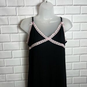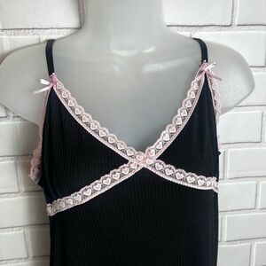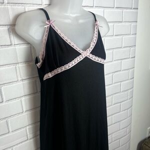 SPOILED ANGEL Black ribbed cami sleep strecth Dress with Pink Lace Trim/size M