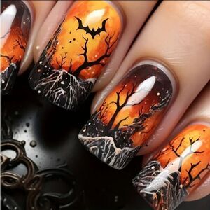 HALLOWEEN PRESS ON NAILS MEDIUM SQUARE GEL SET OF 24 NAILS