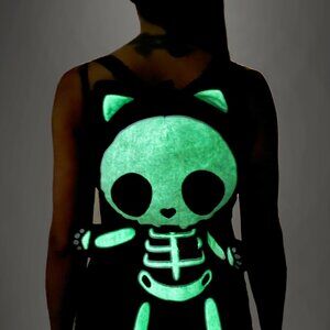 Sweet meets spooky with the Skeleton Kitty Plush Backpack from Spookyville Critters! This eerie little feline is all bones and plush, blending gothic charm with kawaii vibes. Featuring stitched bone details, a soft plush body, and adjustable straps, it's the purrfect accessory for Halloween lovers, pastel goths, or anyone who lives for creepy-cute fashion. The zippered back pocket is just the right size for your essentials—because even undead kitties like to be practical.