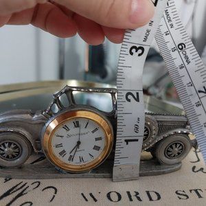 SPOONTIQUES Vintage Fancy Car Quartz Movement Antique Pewter Car Clock Japan