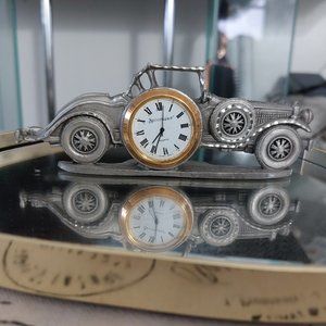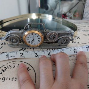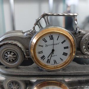 SPOONTIQUES Vintage Fancy Car Quartz Movement Antique Pewter Car Clock Japan Movement