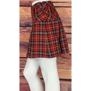 WOMEN'S SMALL. SIZE 36. Preowned with minimal wear. No visible flaws. Plaid skirt with wide yoke. There are beltloops present but no belt is included with purchase. Skirt is pleated. Lined. 85% polyester, 15% wool. Lining is 100% acetate. See similar items and other quality apparel @ lonepineoutfittersnh.com