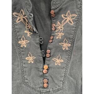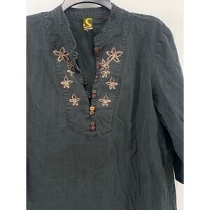 SPORTELLE Women's Black Floral Embroidered 3/4 Sleeve Pullover Top SZ M
