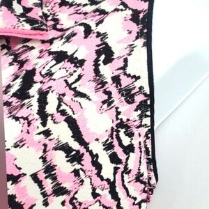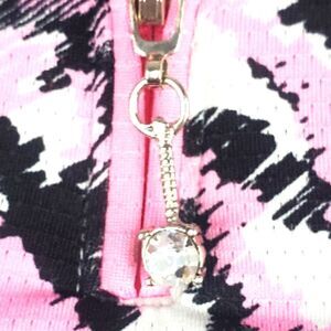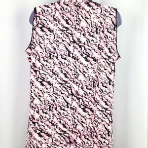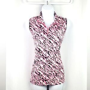 Stylish sleeveless golf top with a pink and black pattern. Features a zip-up front. In great condition.