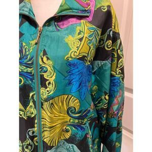 SPORTIF STUDIO 100% Silk 1980s Vintage Retro Parachute Jacket Teal Green Medium