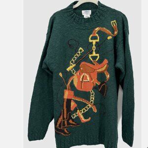 SPORTIFIC MILLER'S COLLECTION Hunter Green COTTON RAMIE EQUESTRIAN SWEATER S NWT