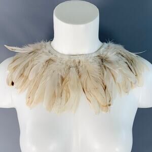 SPORTMAX Beige Leather Feathers Collar Scarf