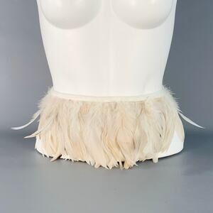 SPORTMAX scarf in a beige leather cord featuring an off white feather collar design, and tie closure. Alternatively, could be styled as a belt.
