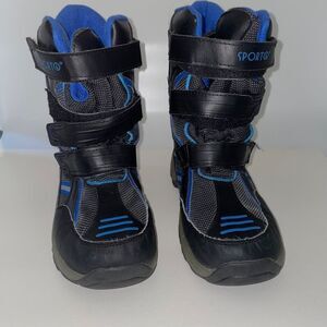 SPORTO BOYS SNOW BOOTS SIZE 6 COLOR: BLACK AND BIUE