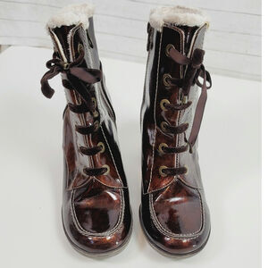 SPORTO CANDICE SHERPA LINED HEELED FAUX LEATHER BROWN BOOTS, SZ 7