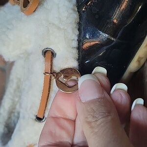 Gently preowned; the wear you see on the fleece is more from being in my closet than from actual wear on my feet I'd say.